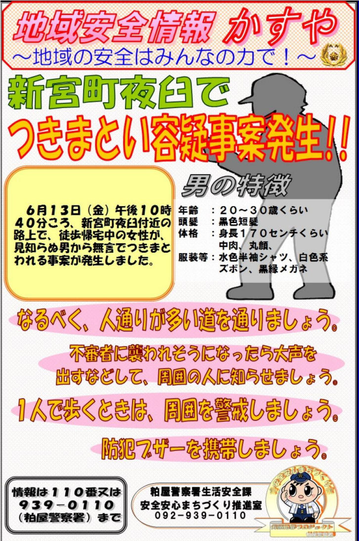 糟屋警察署から最近発行された「地域安全情報かすや」です。